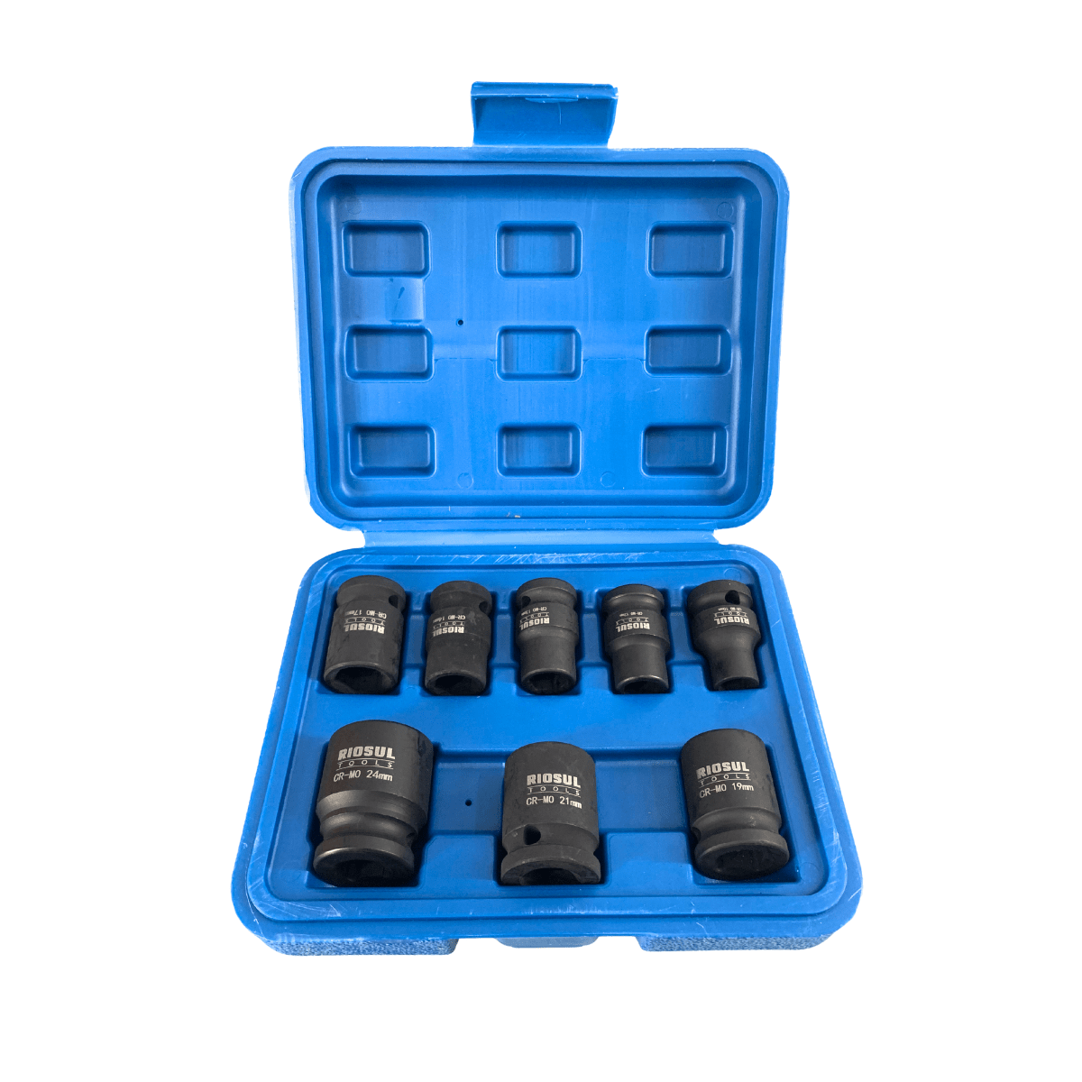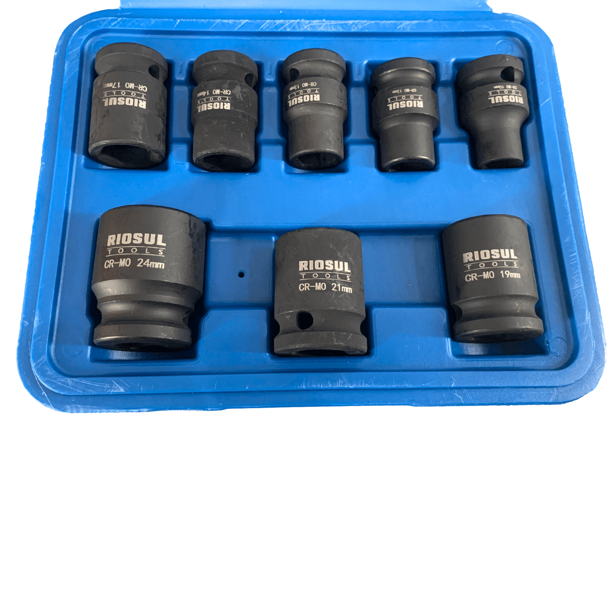 Jogo Soquete de Impacto Curto 8 Peças 10 a 24 Encaixe 1/2
