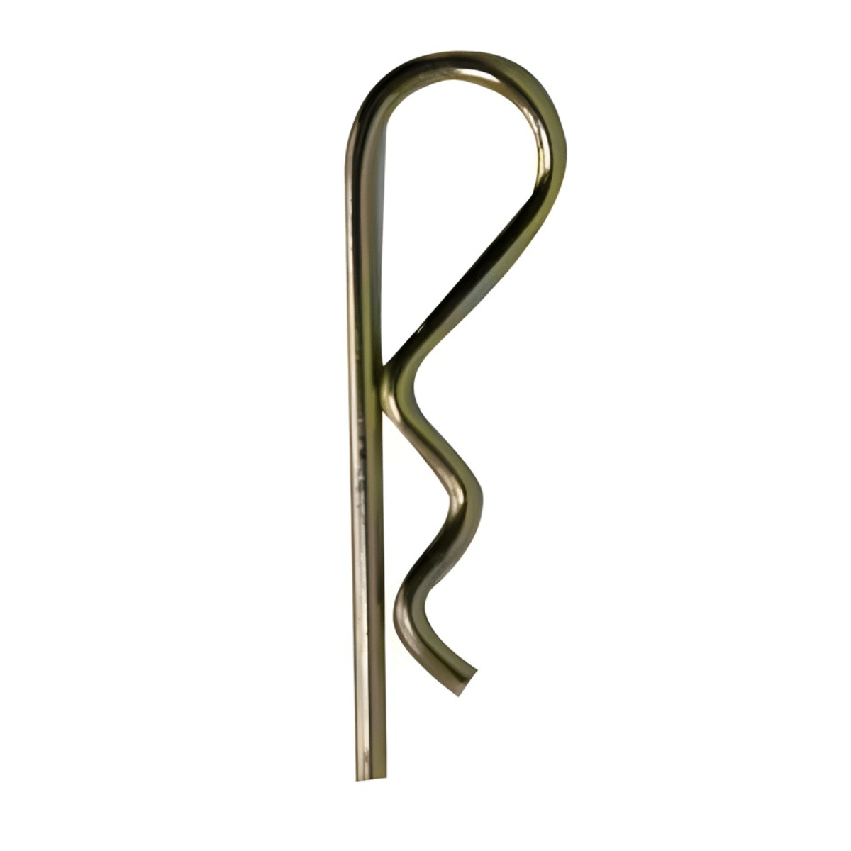Grampo tipo R fabricado em aço de alta resistência, indicado para fixação rápida e segura de pinos, eixos e hastes.