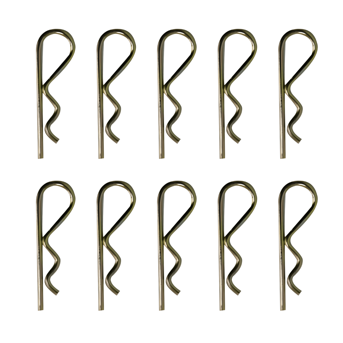 Grampo tipo R fabricado em aço de alta resistência, indicado para fixação rápida e segura de pinos, eixos e hastes.