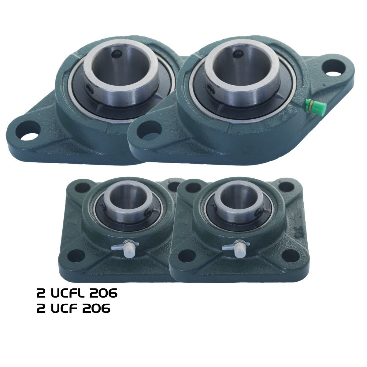 Kit com 2 Mancais F 206, 2 Mancais FL 206 e 4 Rolamentos UC206