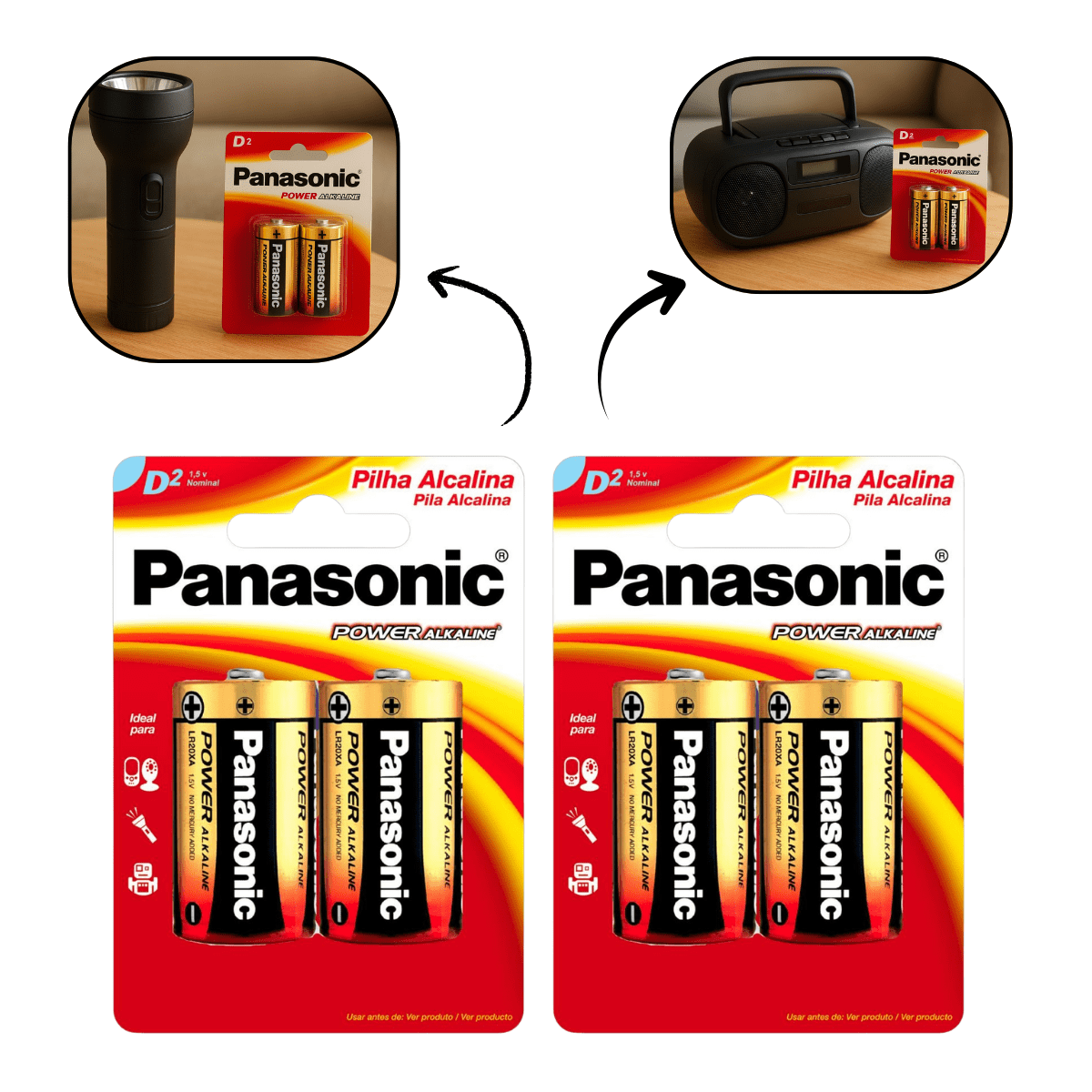 As pilhas Alcalinas da Panasonic foram projetadas para um melhor funcionamento em aparelhos de alto consumo de energia! Elas permitem que você desfrute de suas atividades com total liberdade. São as pilhas que oferecem confiabilidade, com base em experiência e foco em tecnologia! Indicadas para equipamentos que exigem descargas de energia rápidas e fortes, como brinquedos e aparelhos de som.
