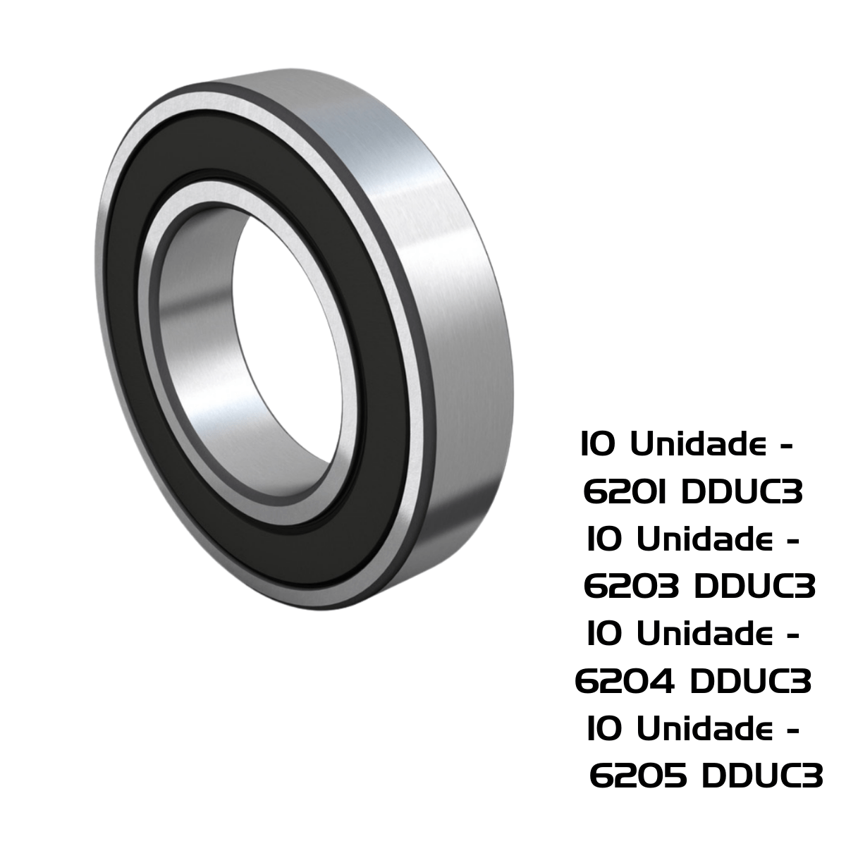 Rolamento 6201 Dduc3 12x32x10 Radial DmrCor: 1 Pç | Tamanho: 6201 | Quant: 10xRolamento 6203 Dduc3 17x40x12 Radial DmrCor: 1 Pç | Tamanho: 6203 | Quant: 10xRolamento 6204 Dduc3 20x47x14 Radial DmrCor: 1 Pç | Tamanho: 6204 | Quant: 10xRolamento 6205 Dduc3 25x52x15 Radial DmrCor: 1 Pç | Tamanho: 6205 | Quant: 10x