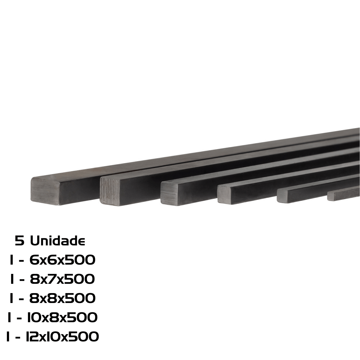 Chaveta Quadrada Barra 6x6x500mm em Aço 1045 - 6 X 6 X 500mmCor: 1 Pç | Tamanho: 6 X 6 X 500Chaveta Quadrada Barra 8x8x500mm em Aço 1045Cor: 1 Pç | Tamanho: 8 X 8 X 500Chaveta Retangular Barra 8x7x500mm em Aço 1045Cor: 1 Pç | Tamanho: 8 X 7 X 500Chaveta Retangular Barra 10x8x500mm em Aço 1045 - 8x10x500mmCor: 1 Pç | Tamanho: 10 X 8 X 500Chaveta Retangular Barra 12x10x500mm em Aço 1045Cor: 1 Pç | Tamanho: 12 X 10 X 500