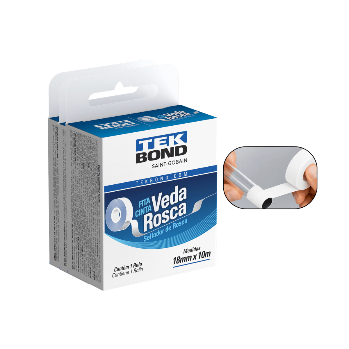 Fita Veda Rosca Branca 18mm X 10m TekbondTamanho: 18 X 25 | Quant: 5x