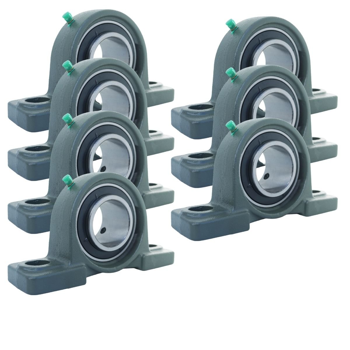 Kit 7 Mancal Pedestal + Rolamento Ucp205 Ucp 205 Para Eixo 25mm