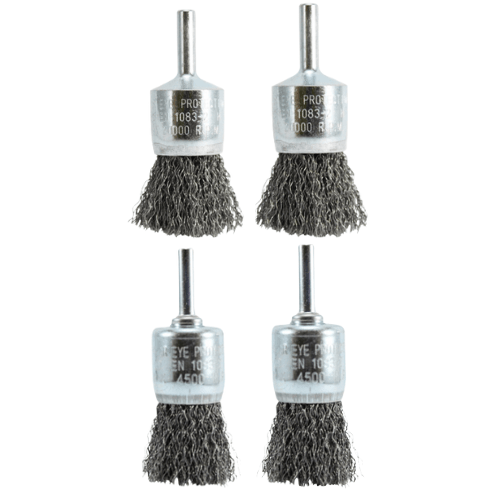 Estes pincéis de alta rotação são fabricados em arames ondulados, indicados para o uso em cantos de difícil acesso e para a remoção de pequenas rebarbas, tintas, oxidação, limpeza de moldes de fundição, polimento de moldes de injeção e de estamparia, entre outras.