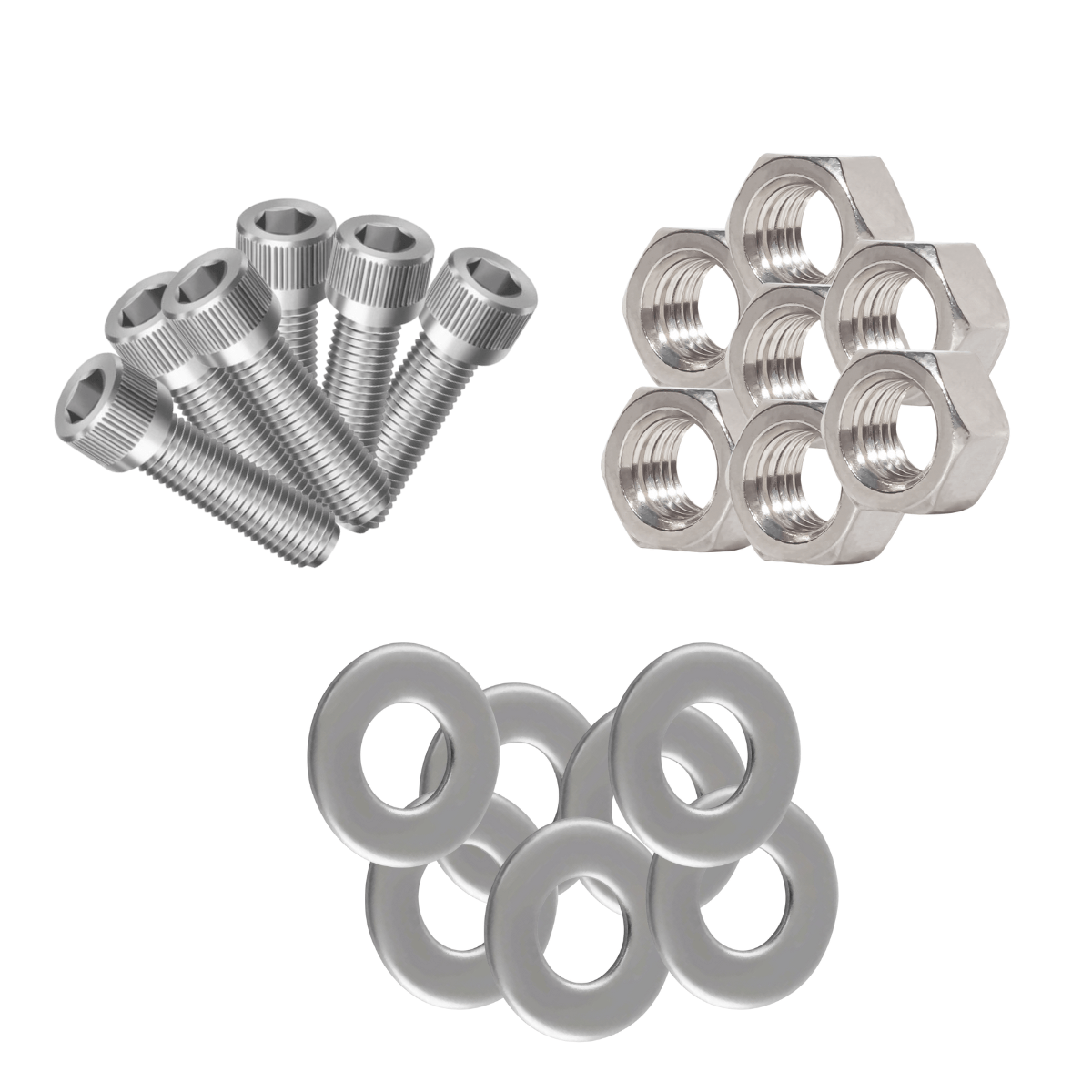 Parafuso Allen M5 X 20 Inox Cilindrica Rosca InteiraCor: 1 Pç | Tamanho: 5 X 20 | Quant: 10xPorca Sextavada M5 Inox Ma 0,8 Rosca GrossaCor: 1 Pç | Tamanho: M5 | Quant: 10xArruela Inox M 5 Lisa MétricaCor: 1 Pç | Tamanho: M5 | Quant: 10x