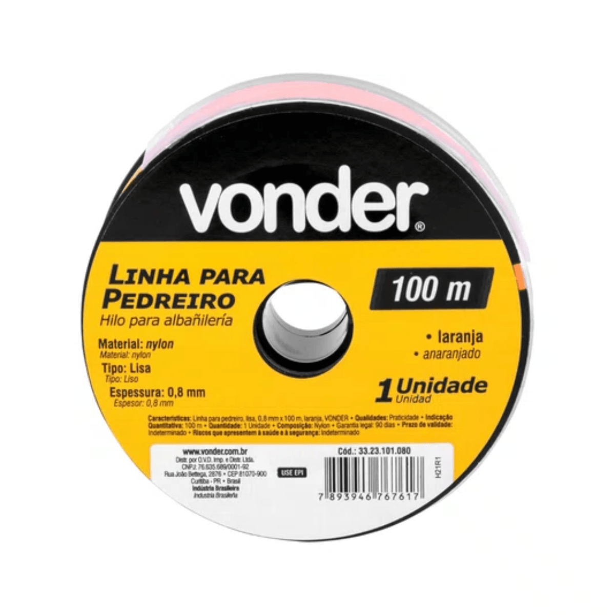 Linha Nylon para Pedreiro 0,8 X 100 Metros Laranja VonderCor: 1 Pç | Tamanho: Único | Quant: 2x