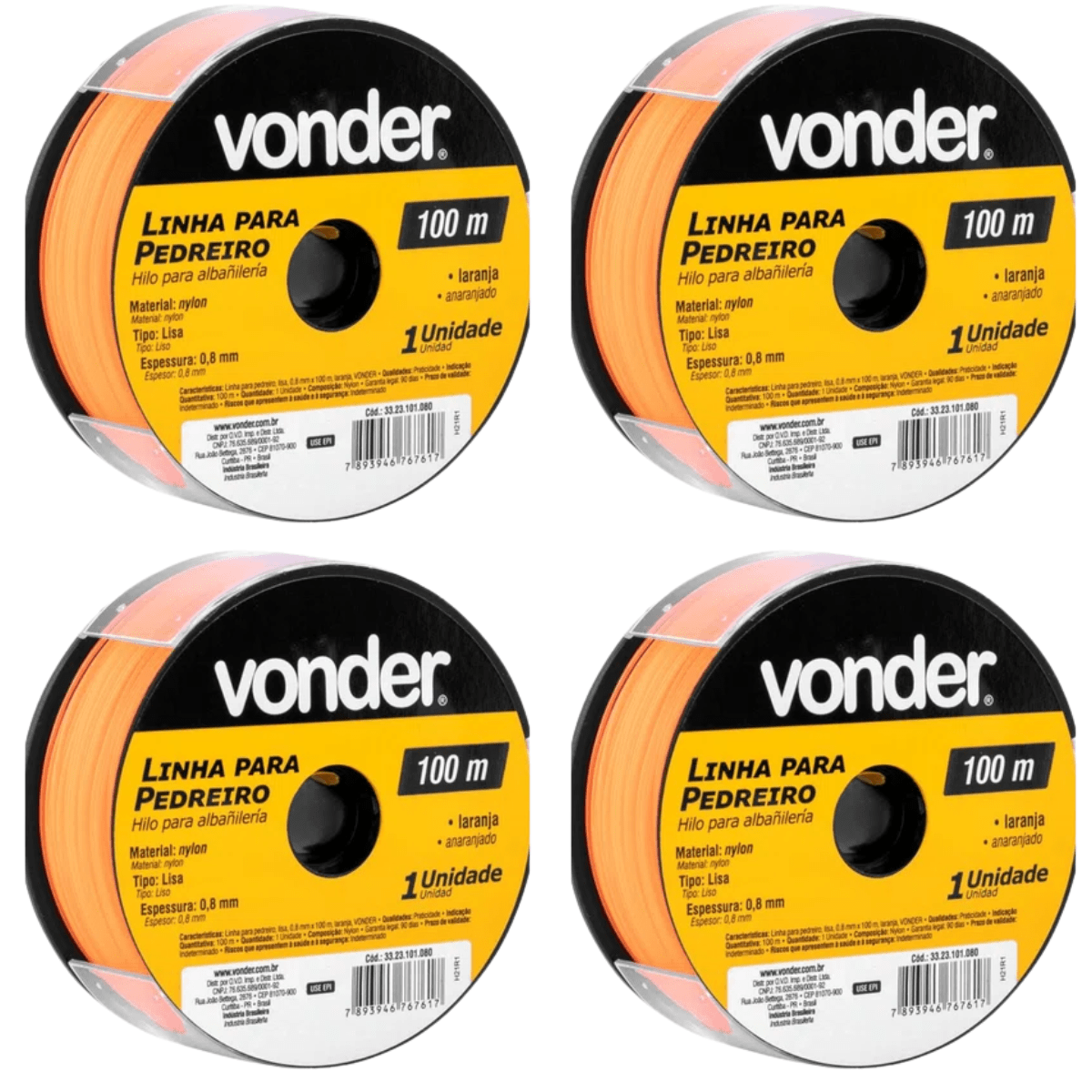 Linha Nylon para Pedreiro 0,8 X 100 Metros Laranja VonderCor: 1 Pç | Tamanho: Único | Quant: 4x