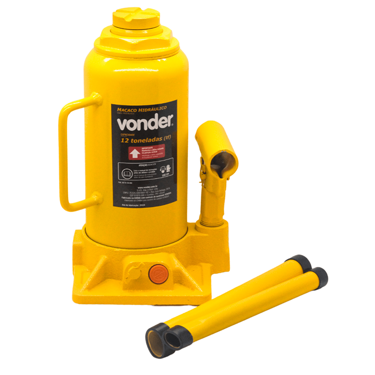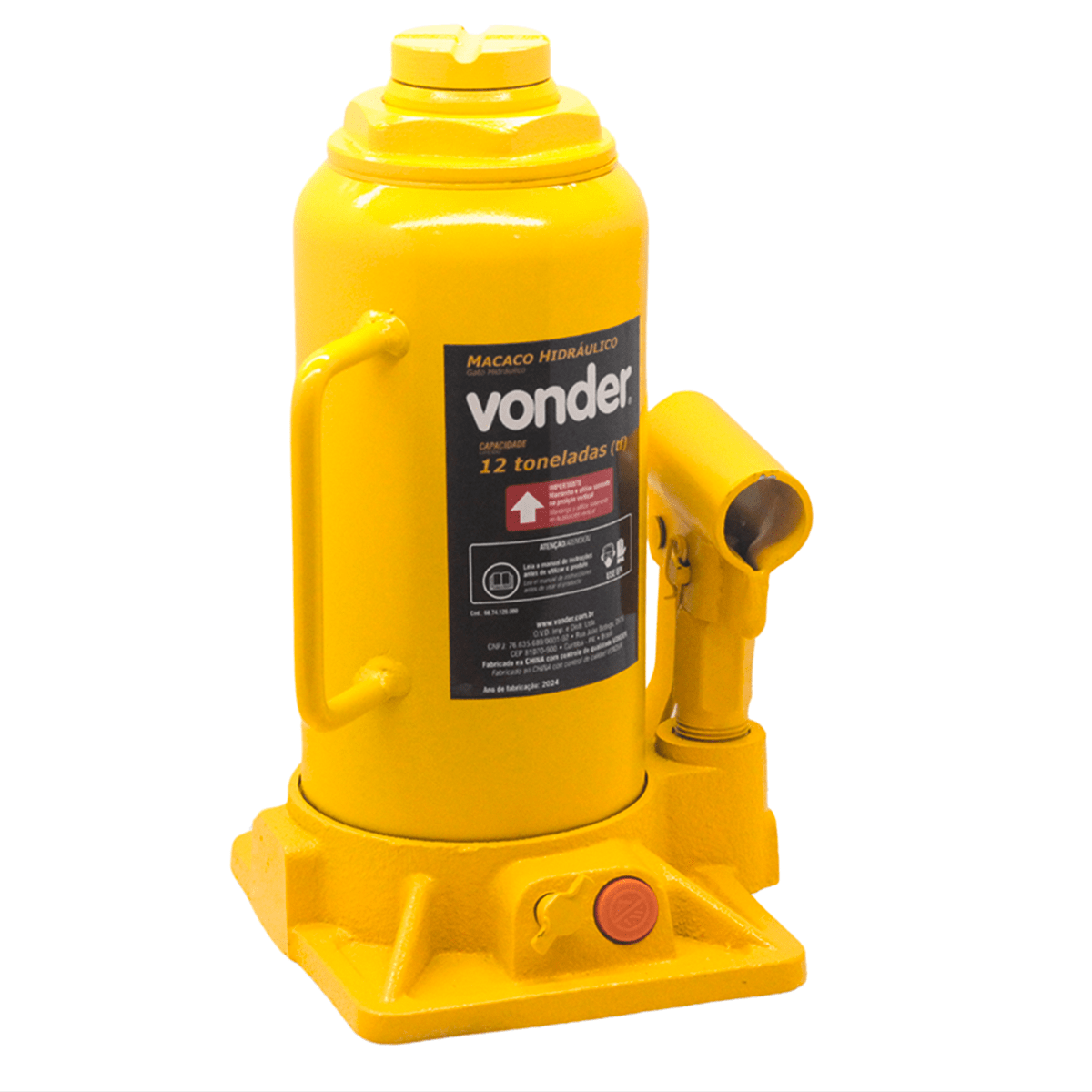Possui válvula de segurança para evitar elevação superior à sua capacidade, cabo dividido em 2 partes que facilita seu armazenamento e fuso de elevação com rosca que proporciona maior elevação e facilita o ajuste no momento da aplicação, além de alça que facilita o manuseio.