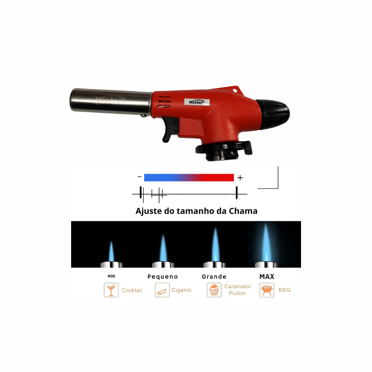 Pode ser utilizado em diversas aplicações, como caramelizar sobremesas, dourar carnes, gratinar queijos, flambar alimentos, além de auxiliar em pequenos reparos do dia a dia.