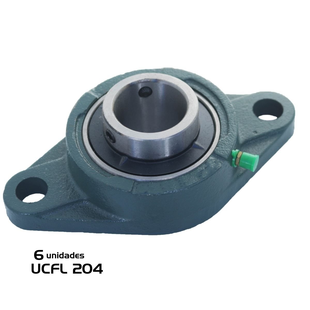 Kit com 6 Mancal Oval Flange FL204 + 6 Rolamento Para Mancal UC204
