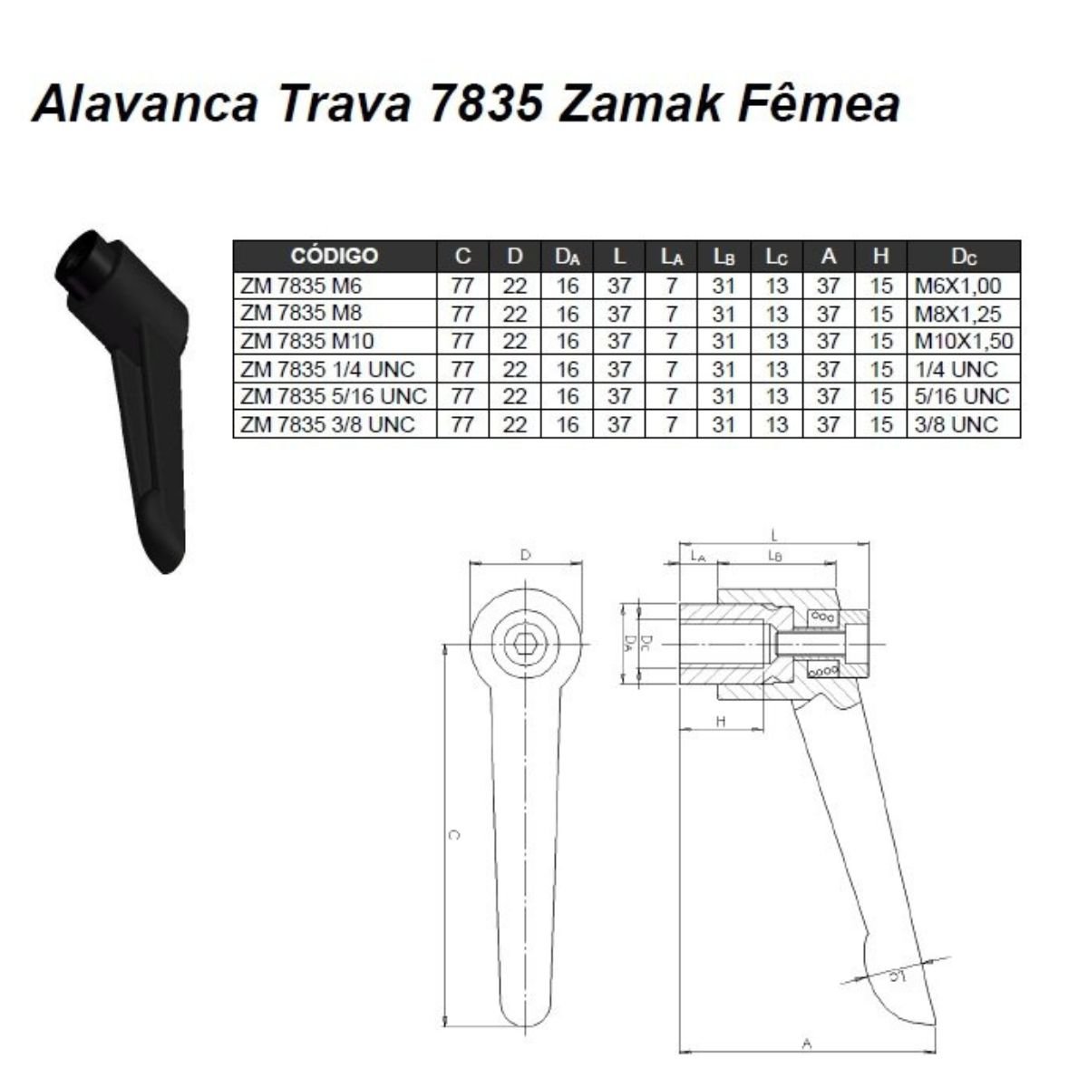 Manipulo Alavanca Trava Fêmea 5/16 - 18unc Zamak 7835Cor: 1 Pç | Tamanho: 5/16 | Quant: 12x