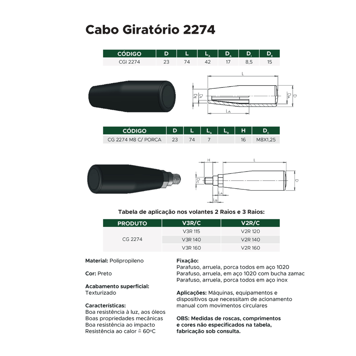 10 Unidades Manipulo Cabo Giratório Cg 2274 M8 - 1,25 para Volante Industrial