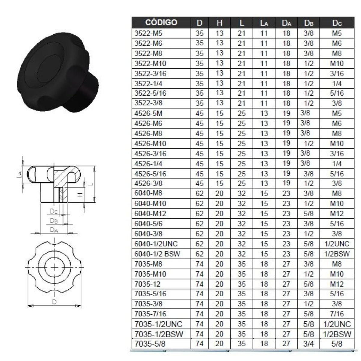 Aplicacoes: Maquinas, equipamento e dispositivos que requerem regulagem manual, e/ou fixacao das partes moveis.