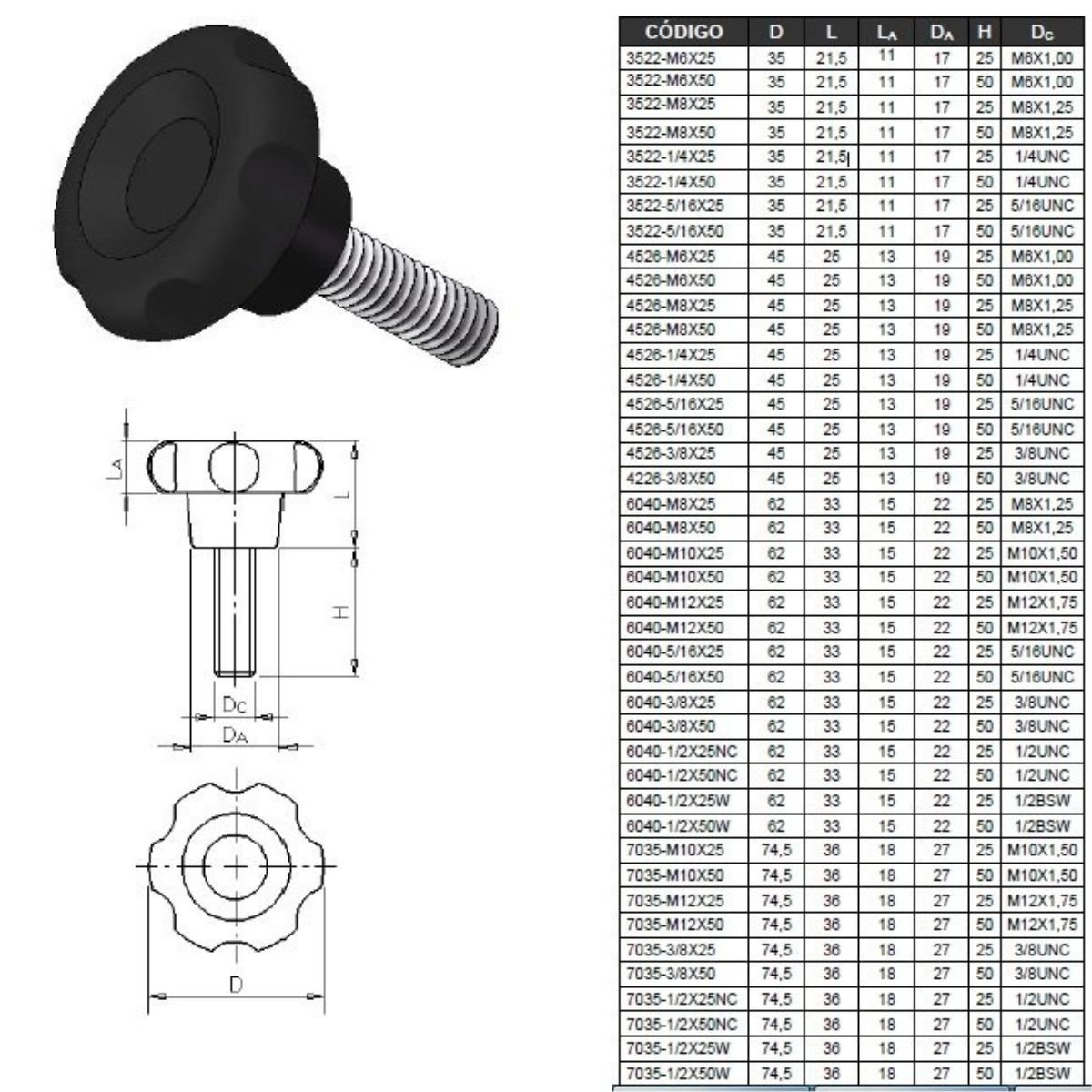 Aplicações: Maquinas, equipamento e dispositivos que requerem regulagem manual, e/ou fixação das partes moveis.