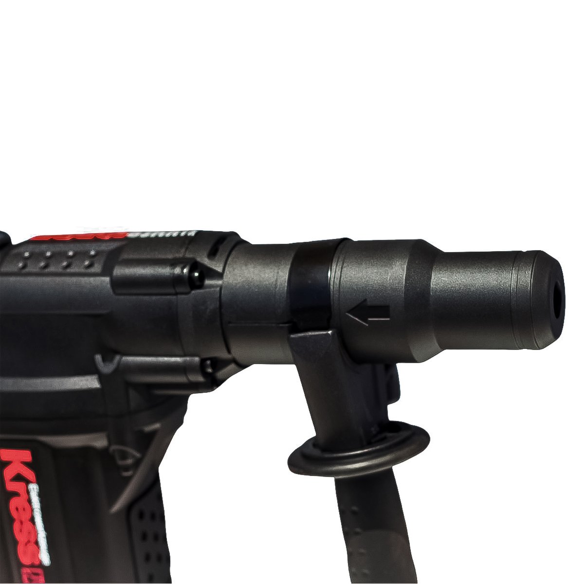 Oferece a versatilidade de 2 funções perfuração e cinzelamento com martelo, e paragem rotativa, bem como um mandril SDS MAX para fácil troca de brocas.