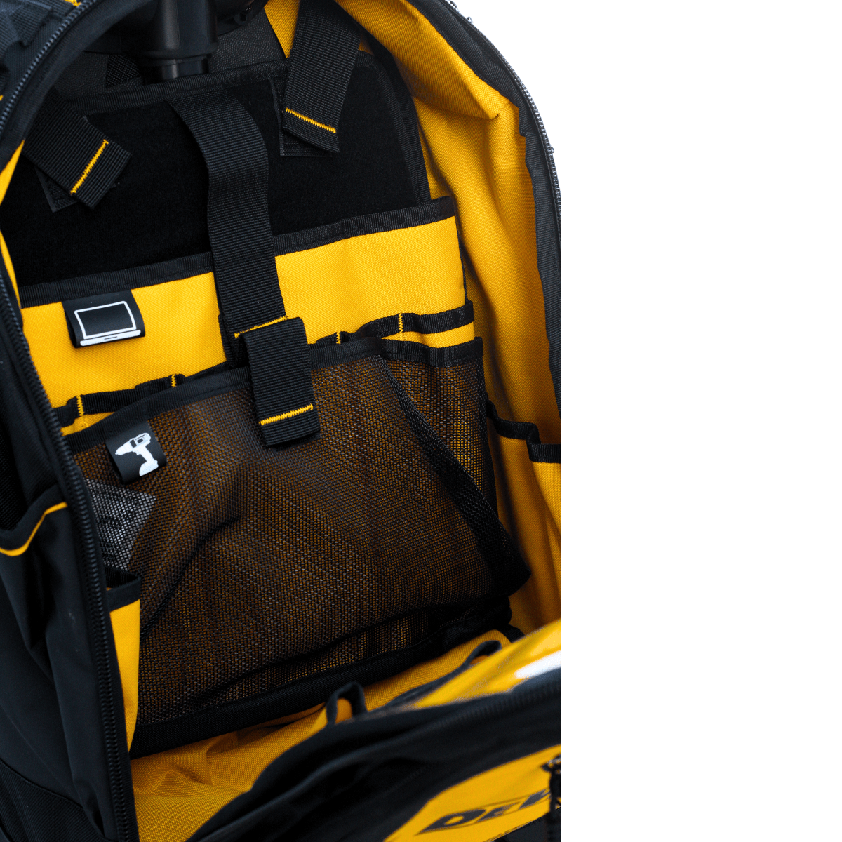 A Mochila para Ferramentas 21 com Rodinhas Dewalt possui capacidade de carga de 25 kg.