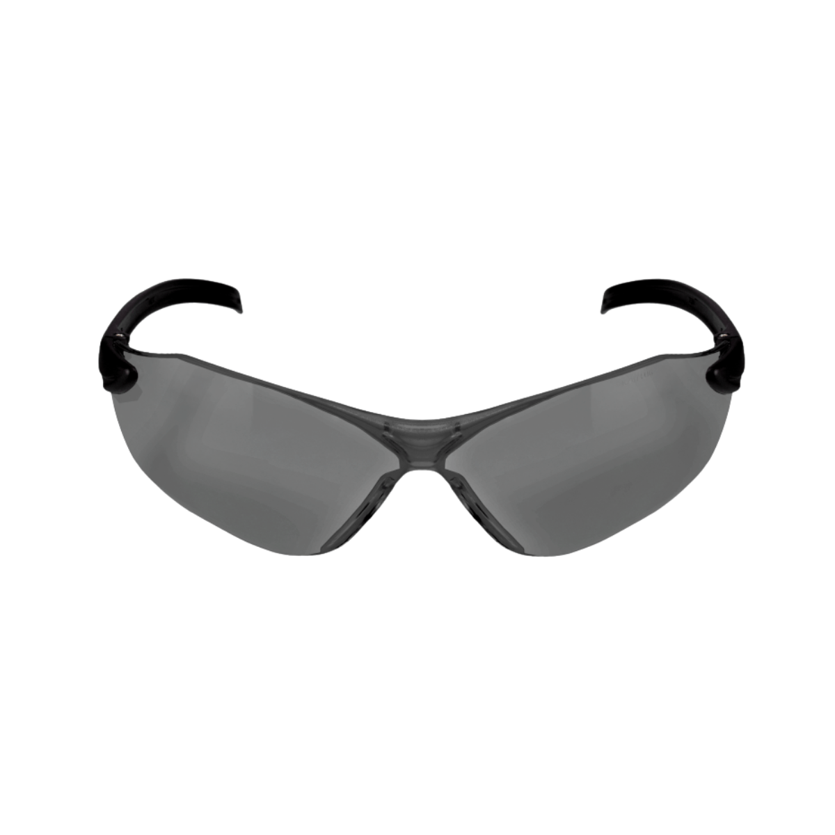 - Óculos de segurança, constituídos de um arco de material plástico preto com um pino central e duas fendas nas extremidades utilizadas para o encaixe de um visor de policarbonato.