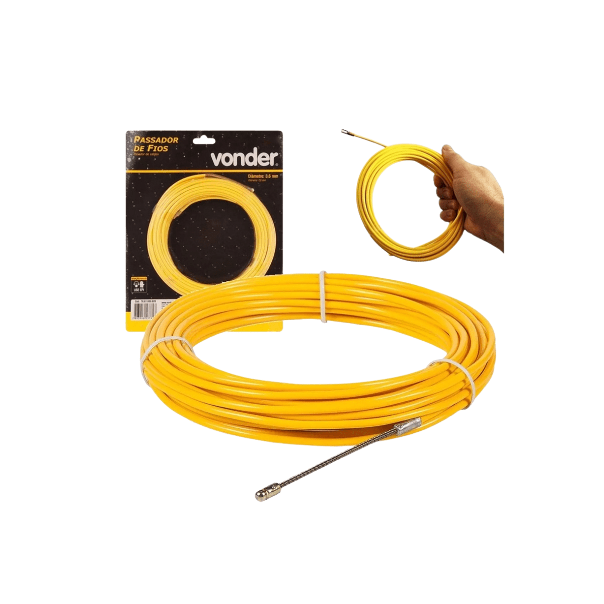 Possui alma de aço reforçada para maior resistência e durabilidade, além de ponta metálica arredondada para não enroscar no conduíte.