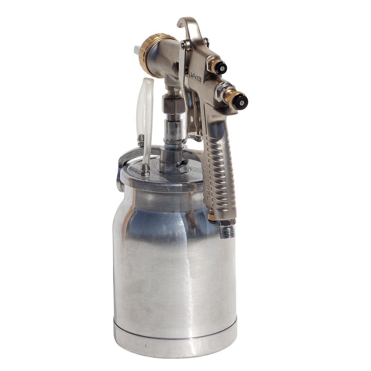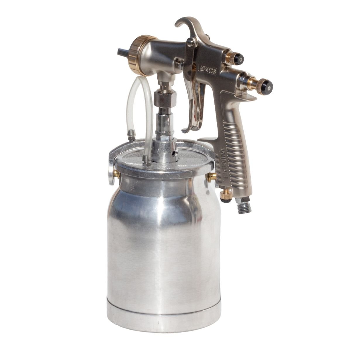 Pistola de pintura é indicada para realizar aplicação de tintas automotivas, imobiliárias e vernizes em diversas superfícies, oferecendo um acabamento de qualidade e sem desperdícios. Adequada na aplicação de todos os materiais comuns de revestimento e acabamento. Possui caneca metálica de 1L para armazenar o produto a ser utilizado, de maneira prática e com segurança. Pode ser utilizada com produtos à base de água. Fabricada com material de procedência, é resistente e apresenta longa durabilidade, e o bico e a agulha são fabricados em aço inoxidável para maior durabilidade e resistência à oxidação/corrosão.