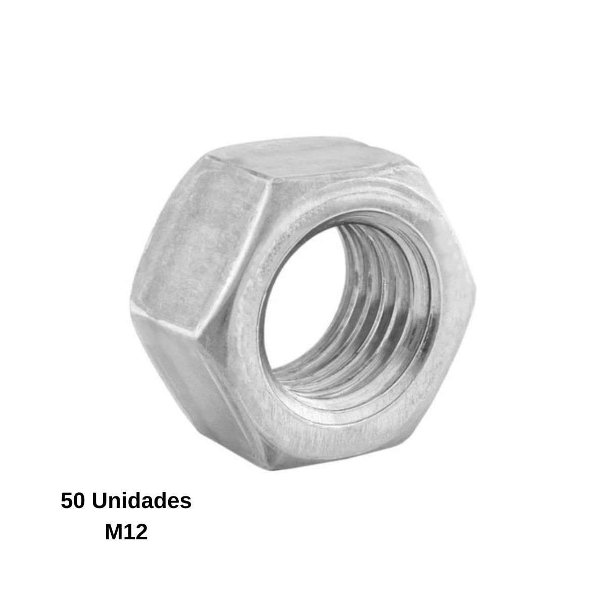 50 Unidade Porca Sextavada M12 Rosca Grossa MA 1,75 Classe 6 Zincada