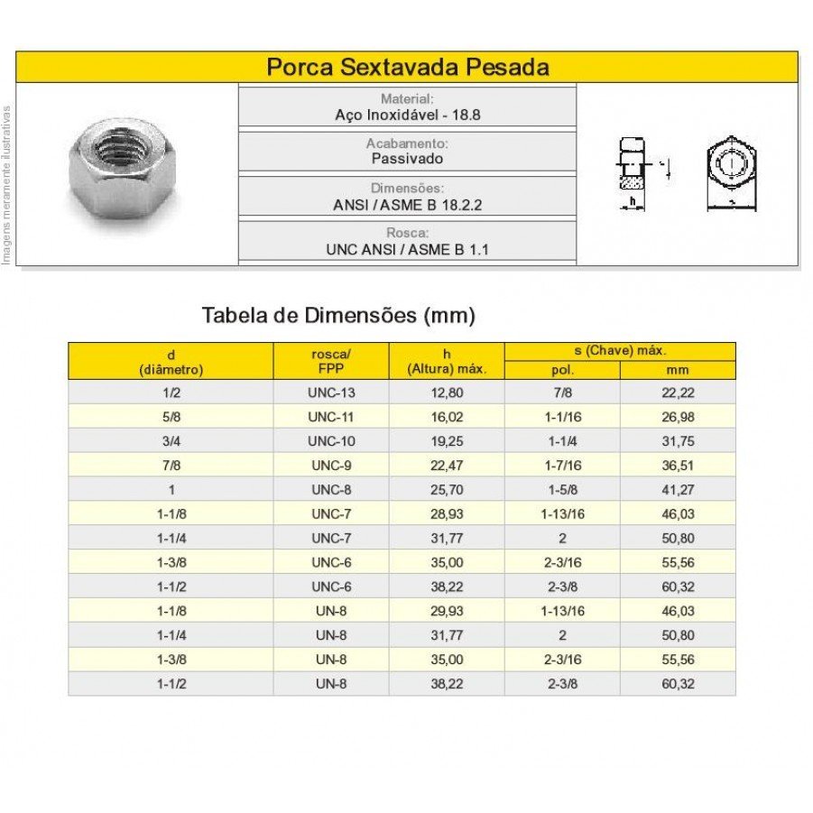 Porca Sextavada M8 Inox Ma 1.25 Rosca GrossaCor: 1 Pç | Tamanho: M8 | Quant: 10x
