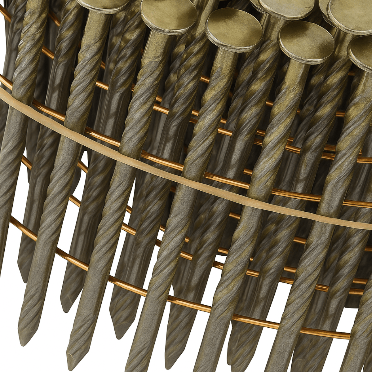 Possui acabamento bicromatizado, proporcionando resistência à corrosão/oxidação. Proporciona aumento da produtividade e a possibilidade de automatização dos sistemas de fixação para madeira.
