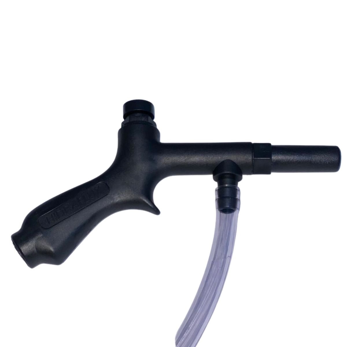 Construído em PVC com mangueira de 20 cm para sucção de líquidos