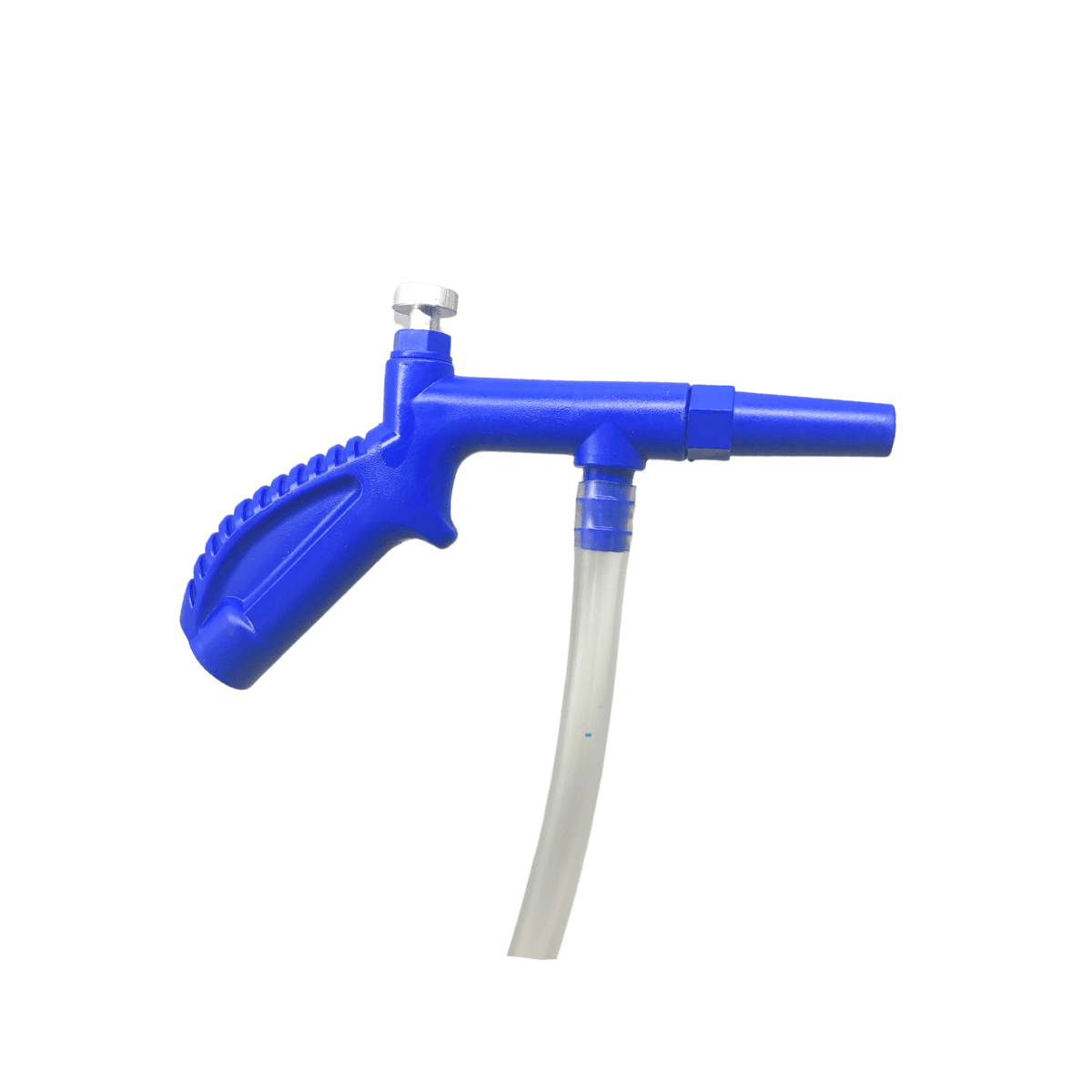 Construído em PVC com mangueira de 20 cm para sucção de líquidos