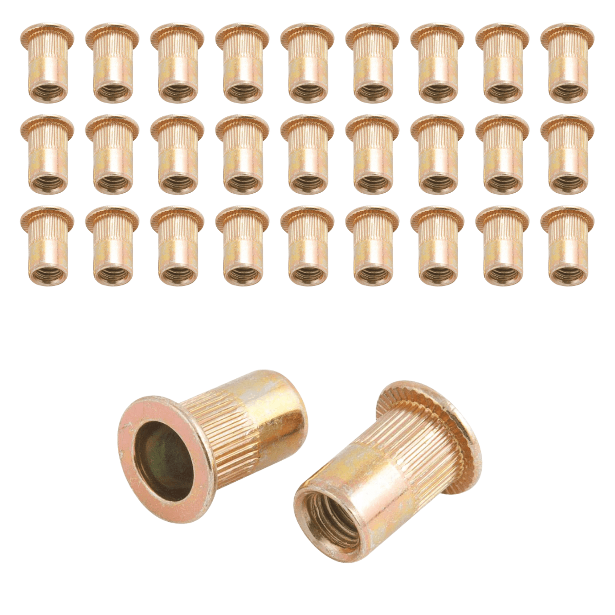 O rebite roscado de corpo cilíndrico recartilhado e cabeça plana alia alto desempenho mecânico com um bom acabamento.