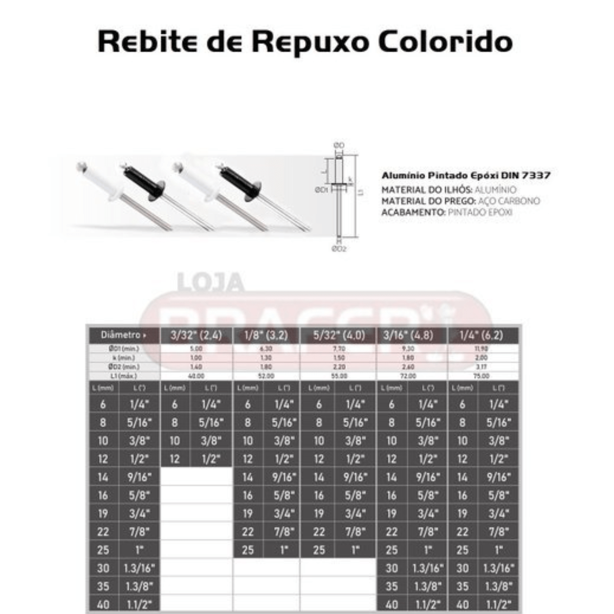 Rebite Repuxo Preto 4,0 X 16 AluminioCor: 1 Pç | Tamanho: 416 | Quant: 1000x