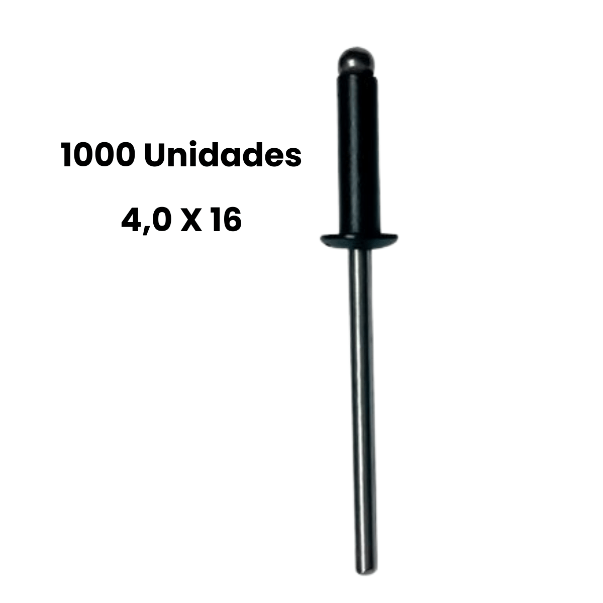 Rebite Repuxo Preto 4,0 X 16 Aluminio 1000 Unidades