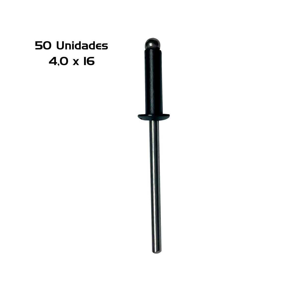 50 Unidade Rebite Repuxo Preto 4,0 X 16 Aluminio