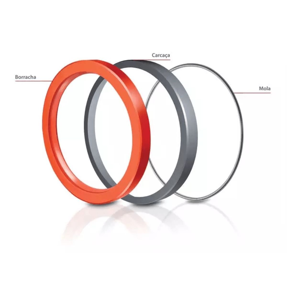 Recoberto externamente com borracha, o modelo BR possui uma carcaça em aço carbono, vedação principal de borracha com mola que garante a estabilidade da pressão radial no lábio de vedação.