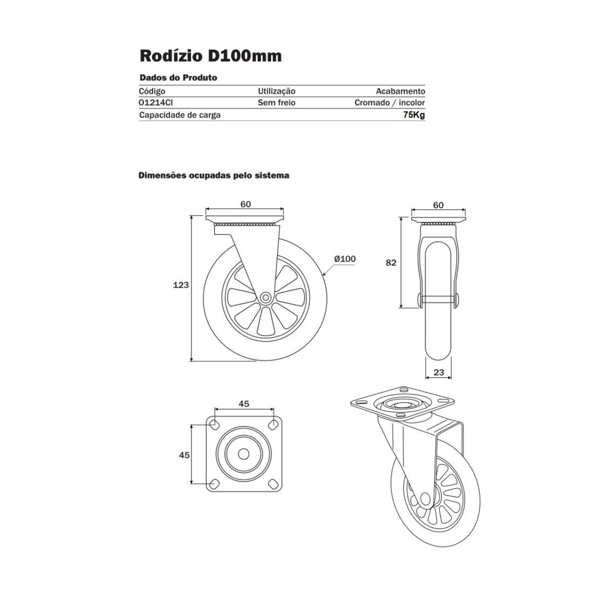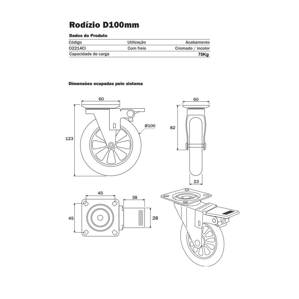 Diâmetro Rodinha: 100mm