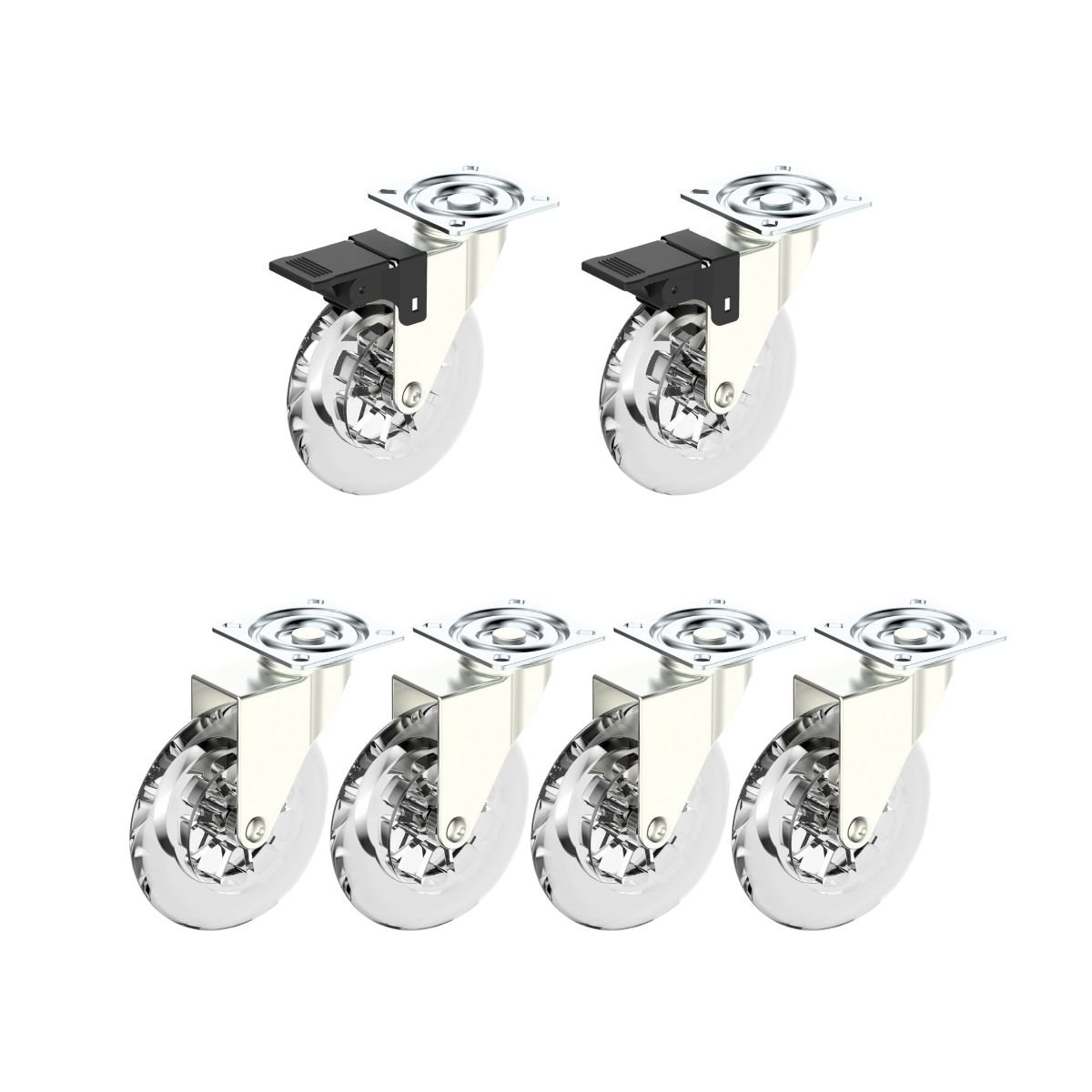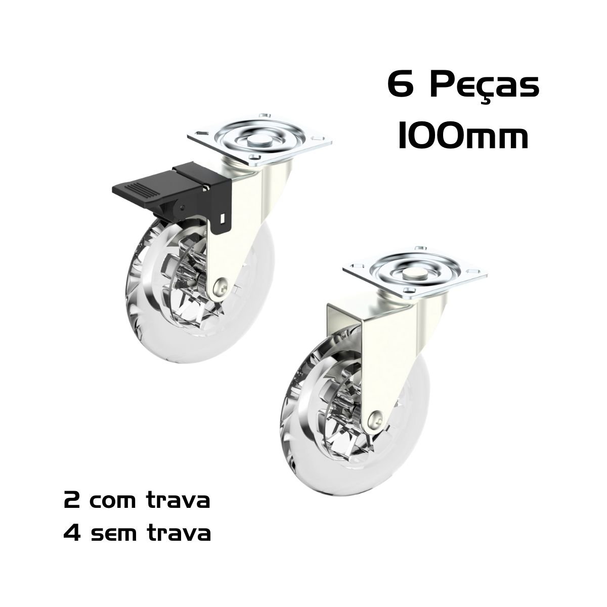 2 rodízios com Freio + 4 rodízios sem Freio