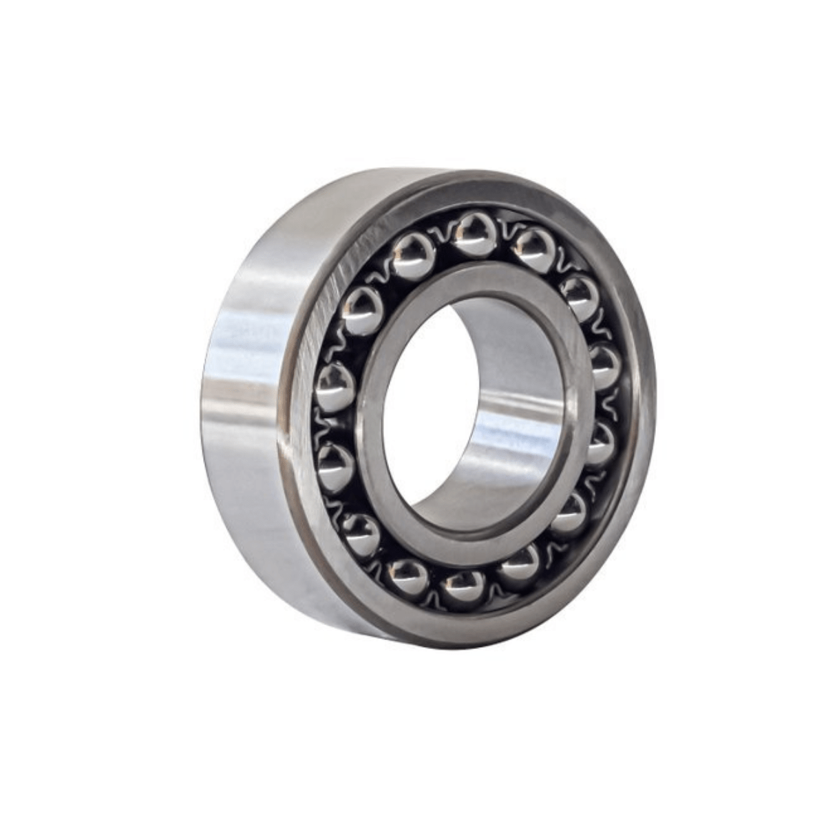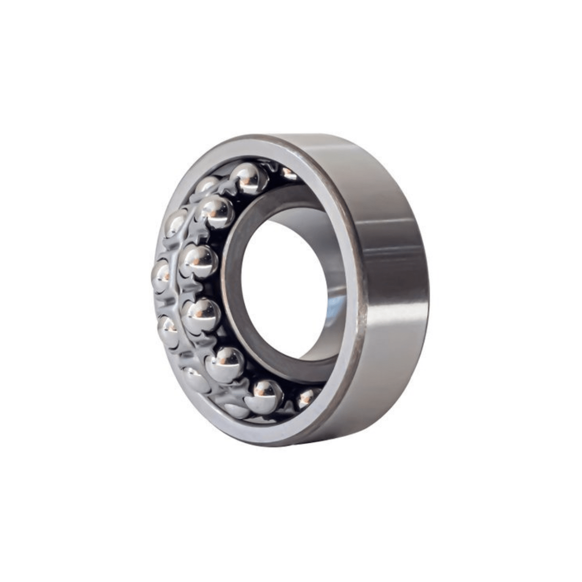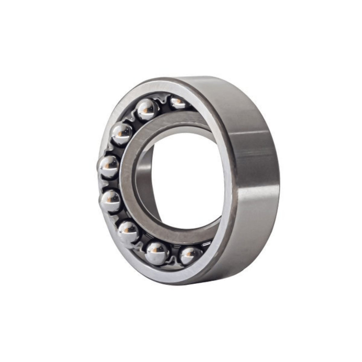 Os rolamentos autocompensadores de esferas têm duas carreiras de esferas, uma pista esférica comum no anel externo e duas ranhuras de pista profundas e ininterruptas no anel interno. Eles estão disponíveis abertos ou vedados. Os rolamentos são insensíveis aos desalinhamentos angulares do eixo em relação ao mancal, que podem ser causados, por exemplo, por deflexões do eixo.