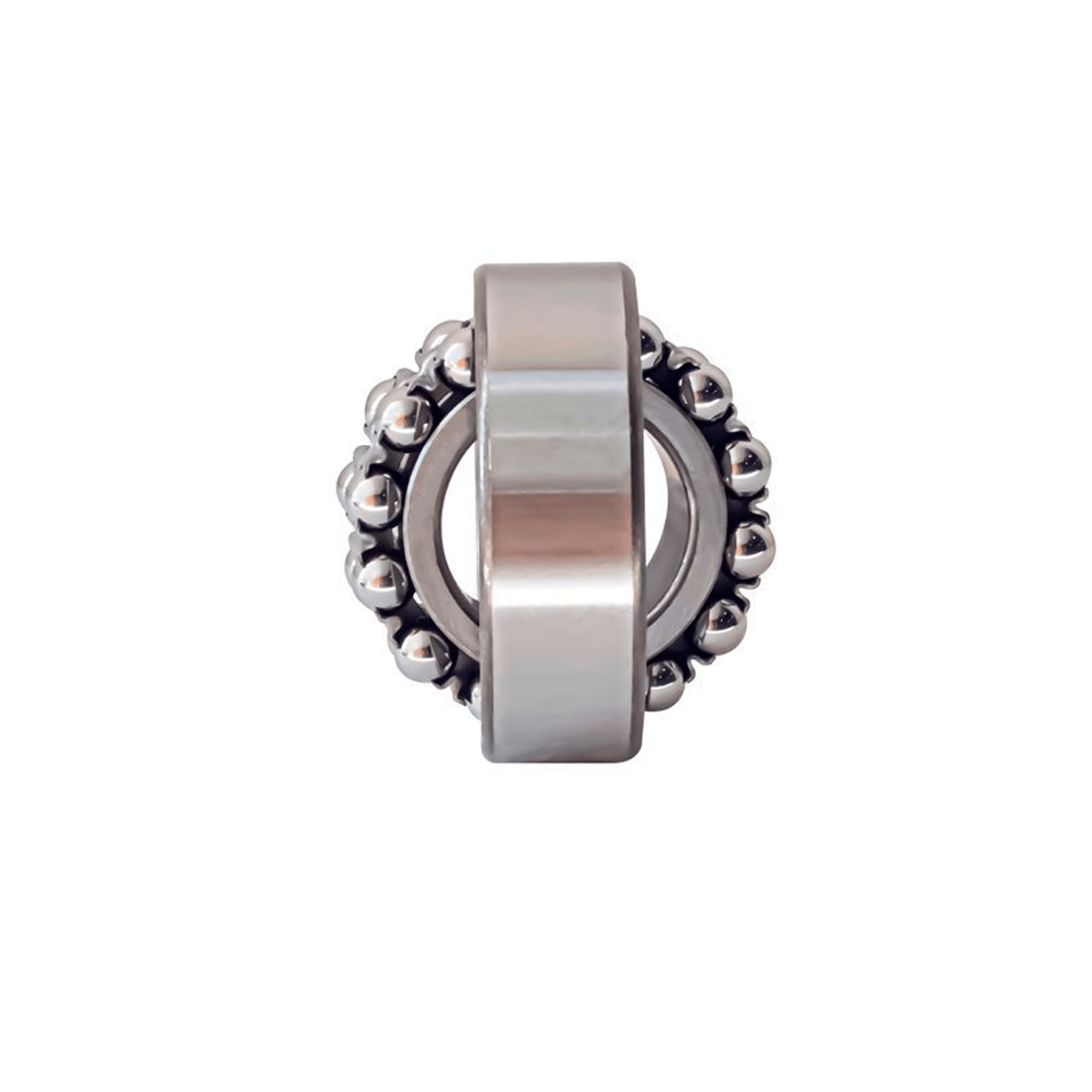 Os rolamentos autocompensadores de esferas têm duas carreiras de esferas, uma pista esférica comum no anel externo e duas ranhuras de pista profundas e ininterruptas no anel interno. Eles estão disponíveis abertos ou vedados. Os rolamentos são insensíveis aos desalinhamentos angulares do eixo em relação ao mancal, que podem ser causados, por exemplo, por deflexões do eixo.