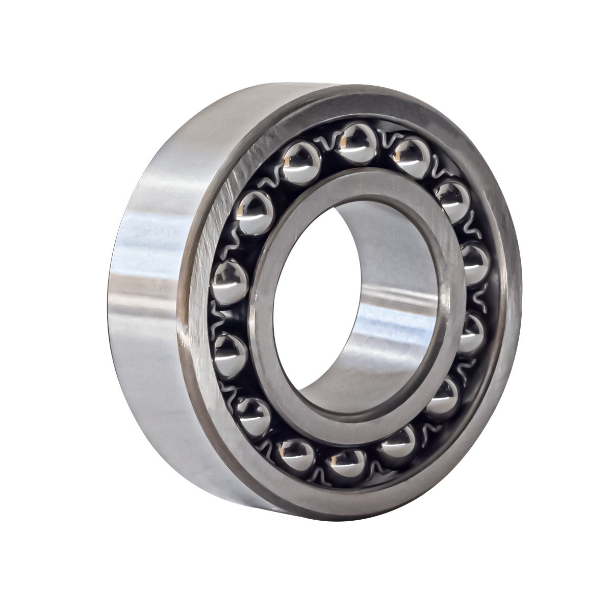 Os rolamentos autocompensadores de esferas têm duas carreiras de esferas, uma pista esférica comum no anel externo e duas ranhuras de pista profundas e ininterruptas no anel interno. Eles estão disponíveis abertos ou vedados. Os rolamentos são insensíveis aos desalinhamentos angulares do eixo em relação ao mancal, que podem ser causados, por exemplo, por deflexões do eixo.