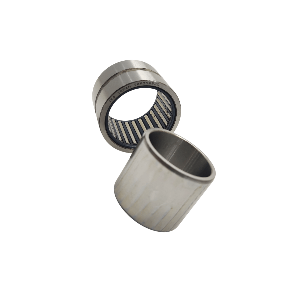 Rolamentos de rolos de agulhas com anéis usinados feitos de aço carbono-cromo para rolamentos.