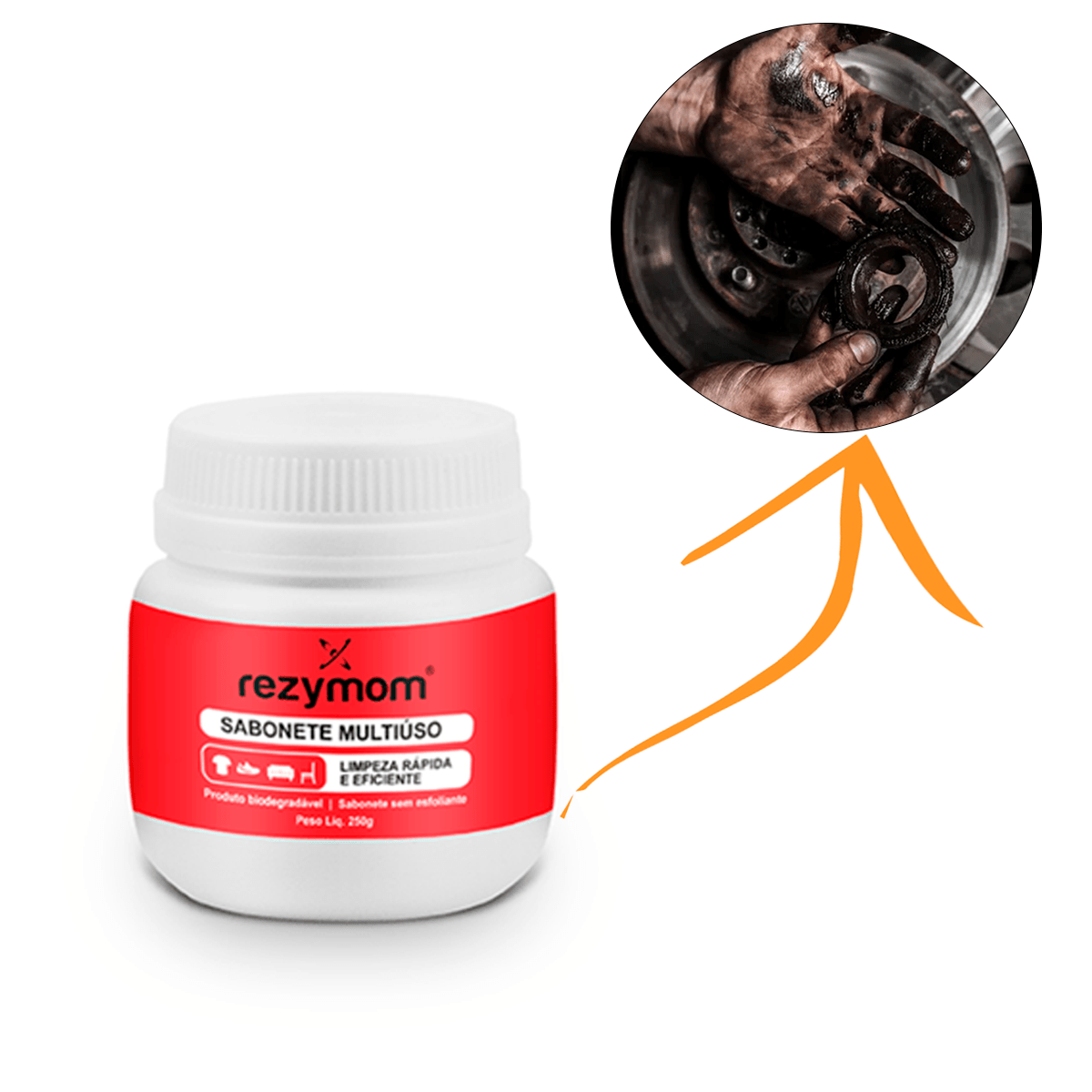 O Sabonete Multiuso Rezymom é um produto que revolucionou a linha de sabonete para a limpeza de mãos. Ele remove a sujeira de uma forma rápida e eficiente, sem prejudicar a pele. Por ser multiúso, também pode ser utilizado para retirar manchas de roupas, tênis, estofados, forros de carro, limpeza de móveis, entre outros. Ainda é excelente para a limpeza da resina (espécie de cola) utilizada por jogadores de handebol, limpando com eficiência a quadra e a bola.