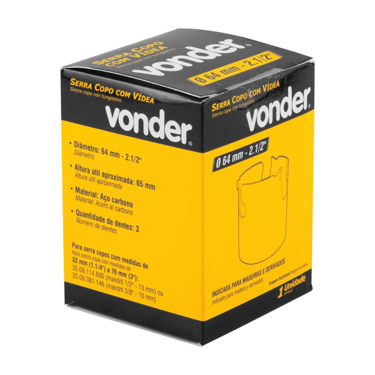 - Destaques Comercial: Dentes de metal duro garantem maior durabilidade e furos de grande diâmetro em menor tempo.