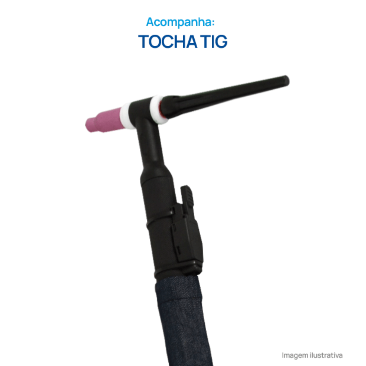 ::: Proteção contra Sobreaquecimento: A máquina multiprocesso conta com ventilação forçada e luz indicadora de sobrecarga. Se o ciclo de trabalho for excedido, a proteção é acionada, evitando danos aos componentes internos.