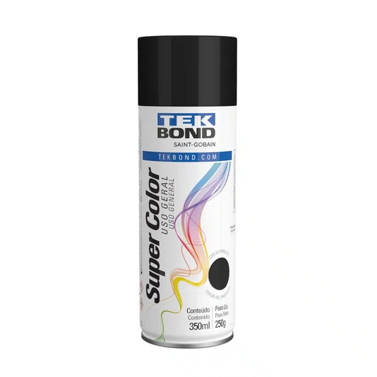 Tinta Spray Preto Brilhante Uso Geral 350ml 250g - Tekbond