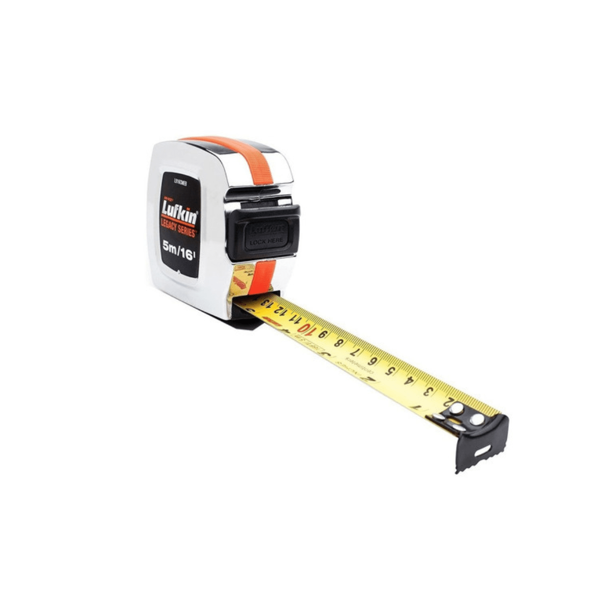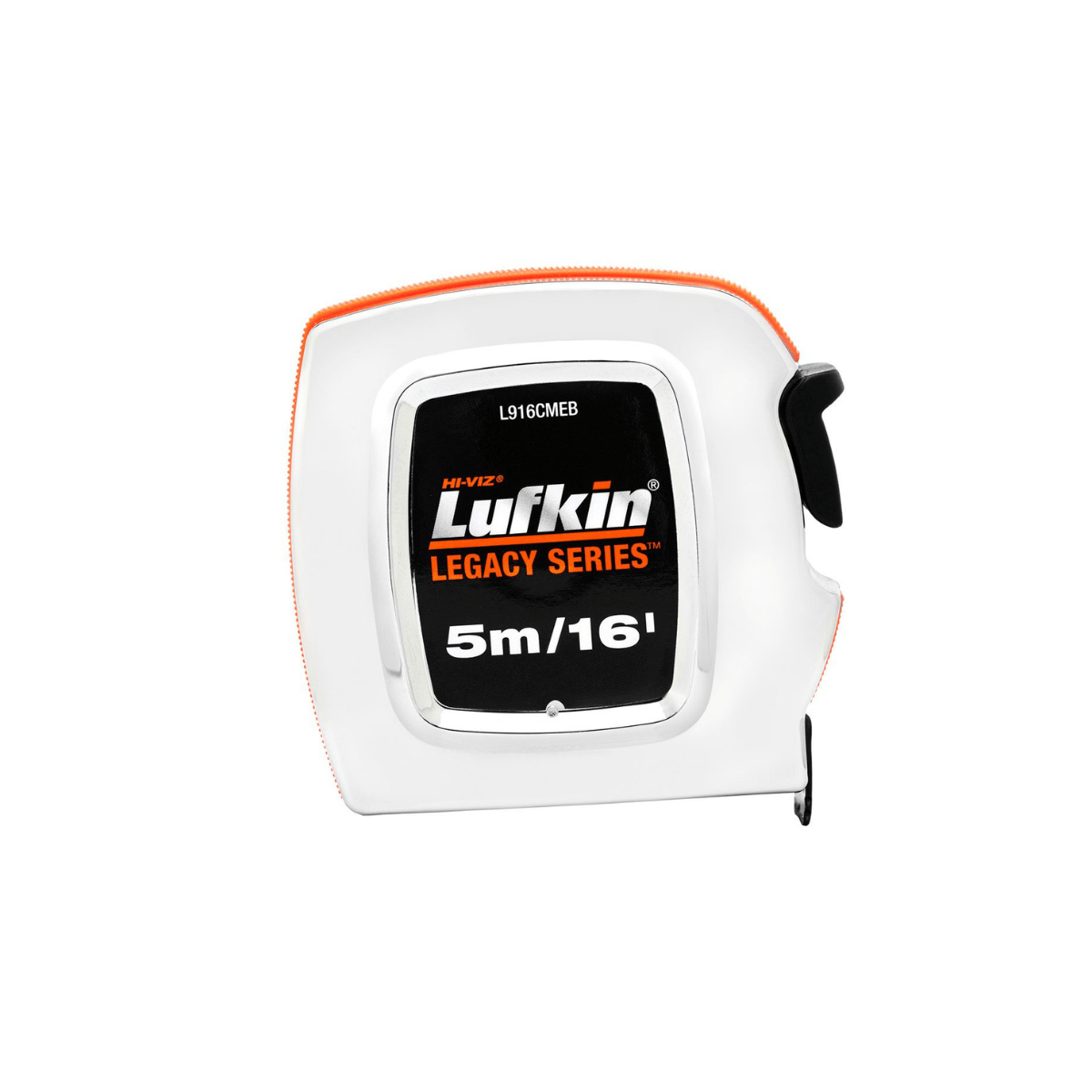 Perfil antideslizante laranja HI-VIZ que facilita a pega e ainda auxilia na hora de encontrar a trena. Botão de travamento extralargo.