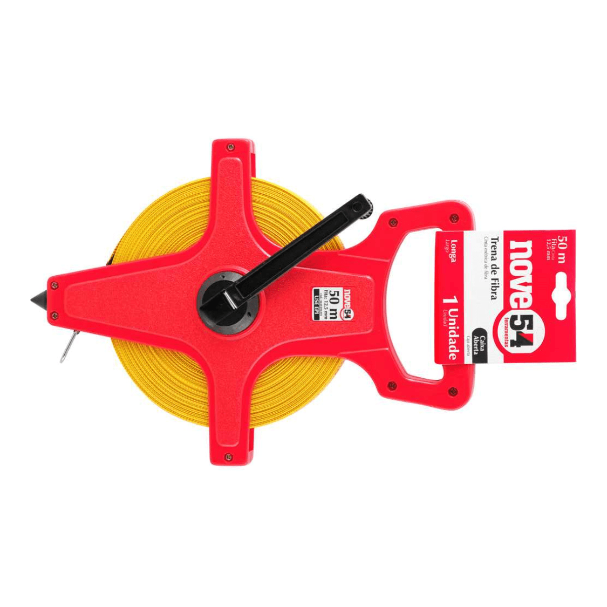 - Destaques Comercial: Caixa aberta em ABS resistente, fita em PVC amarelo graduada em mm e polegadas, resistente à umidade.