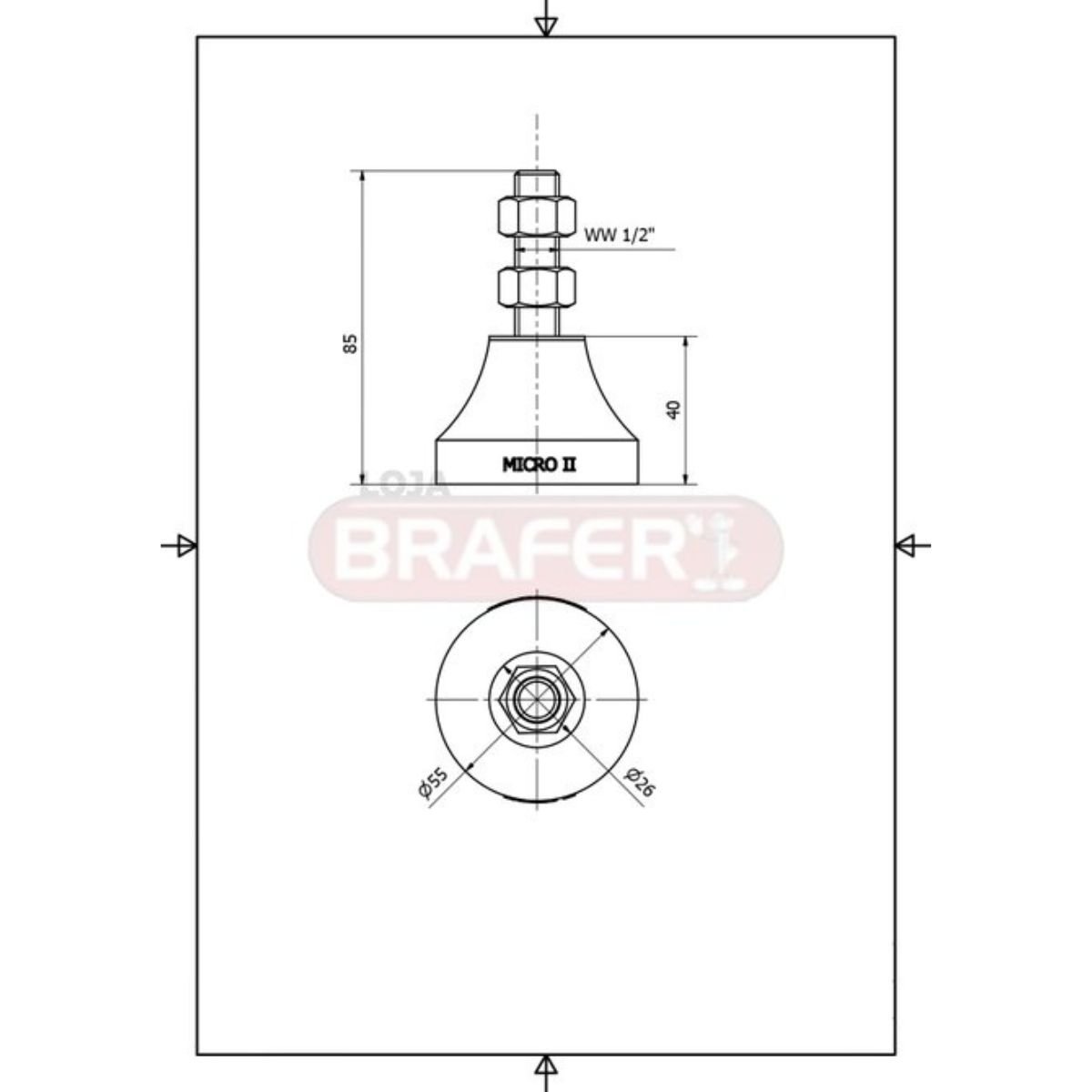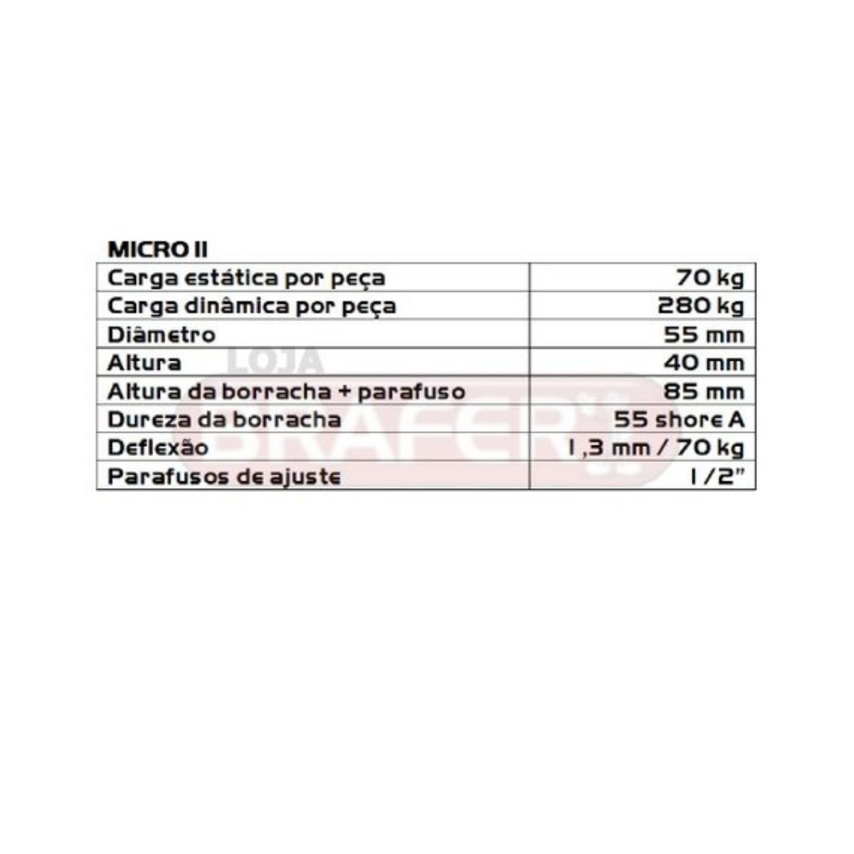 Vibra Stop Amortecedor Micro Ii 1/2 X 55mm 50-200 KgTamanho: 1/2 X 55 | Quant: 2x